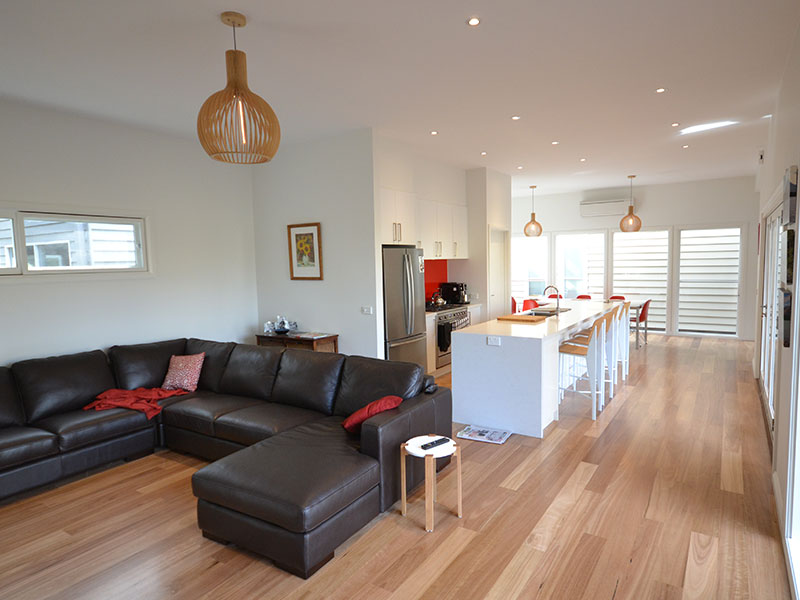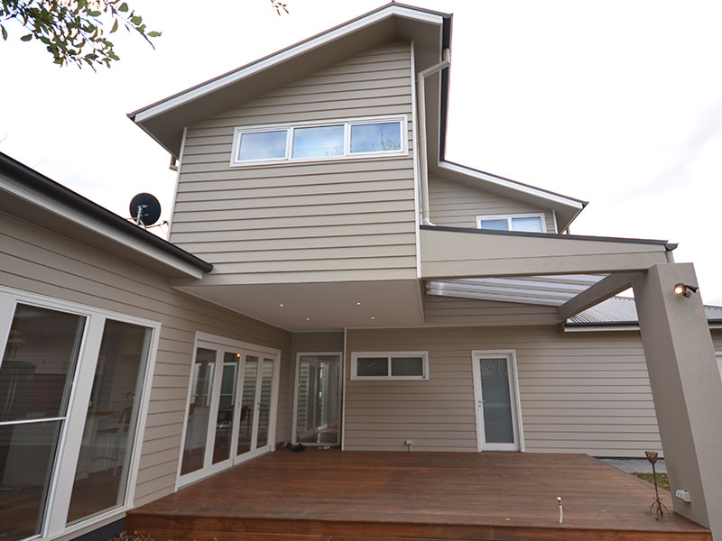 This new home replaced an old brick veneer dwelling that had past it’s useful life. Built for a family of four the home was cladded with Scyon Linea boards to provide durability, but importantly, fit with the local neighborhood character. The design featured living areas on both the ground and first floor and a large covered deck area.